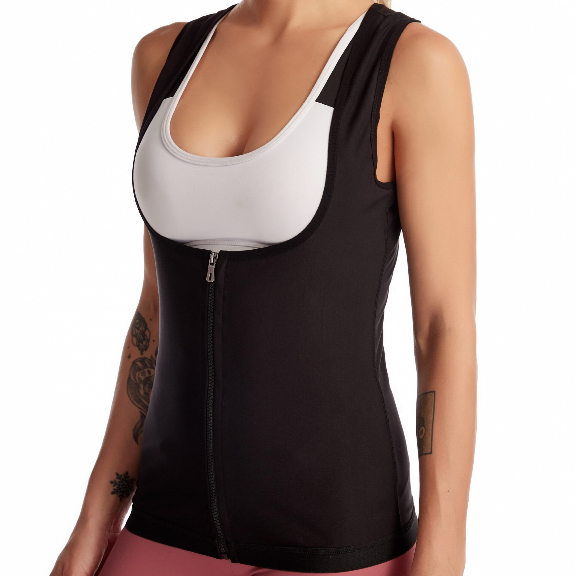 Корсетный пояс надевается на спортивный топ или футболку для впитывания пота. Можно носить как жилет для похудения на облегающее белье в летний день, так и под верхнюю одежду или спортивный костюм для пробежек на прохладном воздухе. Специально разработанный, в качестве средства для похудения для полных женщин, невероятно тонкий, легкий и эластичный материал термо ткани ускоряет метаболизм, а наружный компрессионный слой подтягивает пресс и области спины, боков и поясницы, подчеркивает изгибы фигуры и делает силуэт визуально стройнее и подтянутее.